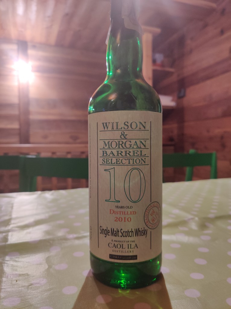 Provo questo Caol Ila di Wilson and Morgan, imbottigliatore indipendente, di 10 anni. Una di 500 bottiglie, messa giù facile facile a 61 gradi e qualcosa.